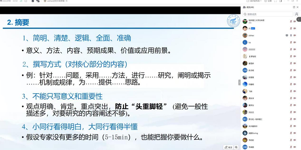 材料学院召开国家自然科学基金申报分享会2025年12月16日上午8:00-10:30,材料学院在线上召开国家自然科学基金申报分享会。邀请了潘子钊博士分享了本年度申报国家自然科学基金的经历和经验。会上他结合自身申报经历,从科学问题的凝练、摘要要点、项目选题的创新性、立项依据的撰写、研究方案的架构、前期基础的积累以及评委的角度等多个维度,毫无保留地分享了心得体会与申报经验。分享内容具体详实,针对性强,与会老师受益匪浅。国家自然科学基金申报分享会(一审:...2025.12.17 09:07 -