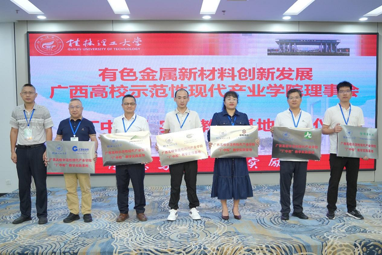 黎贞崇副书记代表学校对本次会议的召开表示热烈祝贺,向各位理事单位、各位嘉宾莅临会议表示诚挚感谢。他简要介绍了学校的基本情况,总结了现代产业学院成立以来在产教融合、人才培养、成果转化三个方面所取得的建设成效。并期盼通过本次会议能够汇聚各企业单位的智慧与力量,围绕广西有色金属及锡、锑、镓、铟、锗等关键金属资源储量和产量位居全国前列的资源优势和区位条件,积极打造关键金属产业集群,建设智慧冶金等新兴专业或课程。同时,也对现代产业学院下一步的建设发展进行更深、更广的战略性谋划和布局,完善资源共享机制、产教协同机制、创新管理体制机制,积极构建高校与产业集群联动发展机制,为赋能国家和区域高质量发展贡献力量。随后,黎贞崇为新增加的5家理事单位进行授牌。