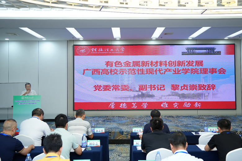 10月18日,我校举办有色金属新材料创新发展广西高校示范性现代产业学院第三届理事会暨产业学院建设发展研讨会。会议由材料科学与工程学院党委书记梁军主持,学校党委常委、副书记黎贞崇出席会议并致辞。来自区内外22家企业相关领导和专家,我校本科生院、材料科学与工程学院、化学与生物工程学院主要负责人、以及现代产业学院相关师生代表参加会议。