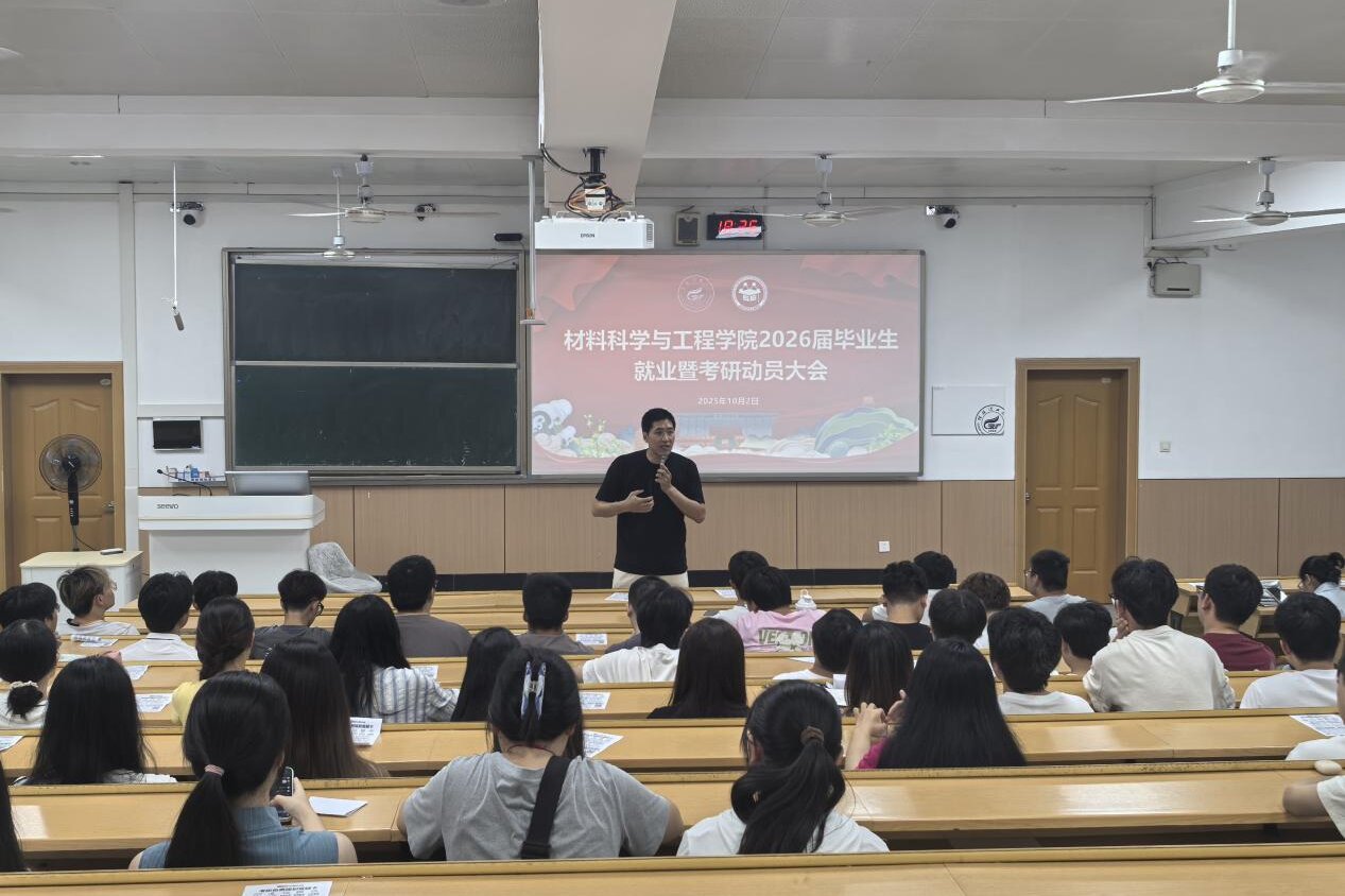 为帮助2026届本科毕业生准确把握当前考研与就业形势,科学规划未来发展,10月12日晚,材料科学与工程学院在屏风校区9201教室举行2026届本科毕业生考研与就业动员大会。学院党委副书记郝文佳、2026届本科生辅导员以及全体学生参加会议,会议由辅导员曲怀仁主持。