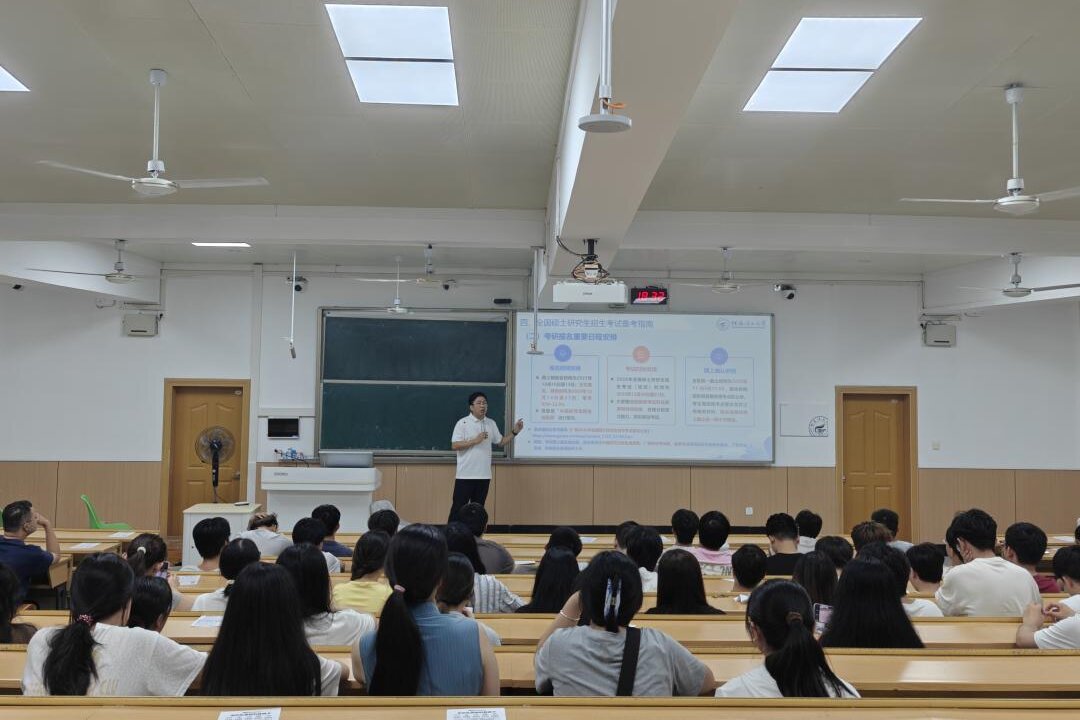 会上,郝文佳通报了学院2025届本科毕业生的考研报考情况及录取院校分布,并作动员指导讲话。他深入分析了2026届学生面临的考研与就业形势,建议同学们从三个方面做好准备:一是理性选择,全面评估自身实力,在考研与就业之间做出合理抉择,科学选定目标院校或就业方向;二是科学规划,就业学生应主动提升实践能力、广泛收集信息,考研学生则要专注目标、善用资源、高效备考;三是端正心态,统筹兼顾实习、考研与就业的关系,全力以赴。郝文佳鼓励同学们合理择校、系统复习、坚定信心、持之以恒,并表示学院将全力为同学们的考研与就业提供支持保障。
