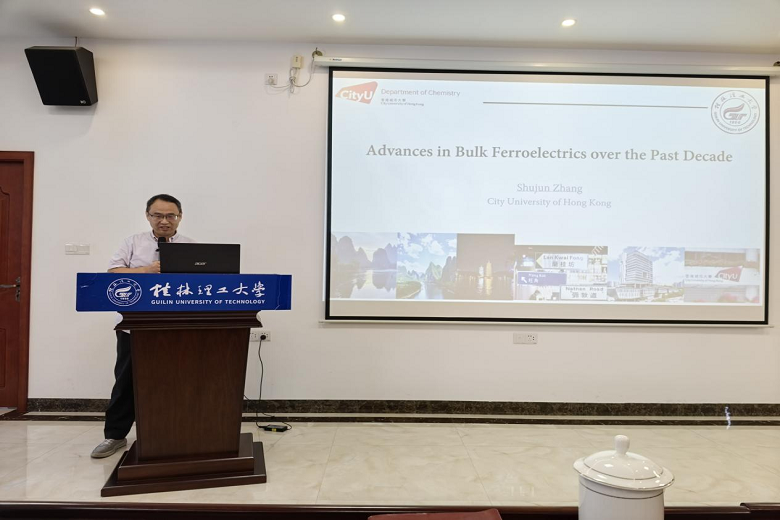 2025年10月20日,桂林理工大学材料科学与工程学院特邀香港城市大学讲座教授、澳大利亚伍伦贡大学杰出教授、世界陶瓷科学院院士张树君教授在协同创新中心三楼会议室开展学术报告。本次报告以 “Advances in bulk ferroelectrics over the past decade” 为主题,带领师生走进铁电材料的奇妙世界。