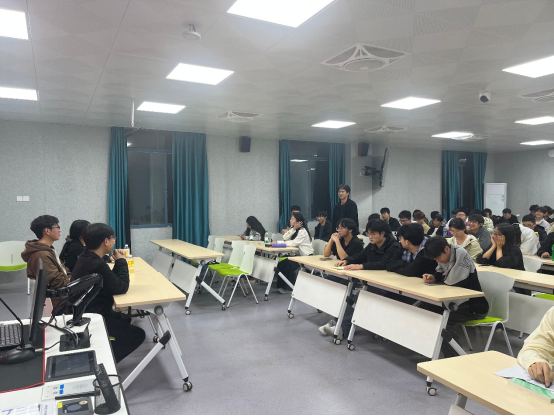 教研室主任黄宏锋老师主持交流会。他对三位高年级同学到场分享学习心得表示欢迎,并强调大学是知识积累与能力培养的关键阶段,希望2025级同学们珍惜学习机会,善于向优秀学长学姐取经,尽早确立发展目标,夯实专业基础。